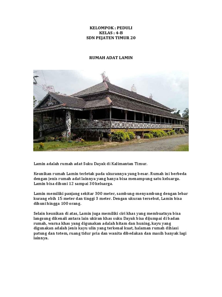 Rumah lamin pdf. Pada umumnya rumah Lamin. Lamin sebagai rumah tinggal perlahan. Bangunan Lamin biasanya berdiri dipinggir sungai di pedalaman hutan sehingga Lamin memiliki konstruksi rumah panggung untuk.